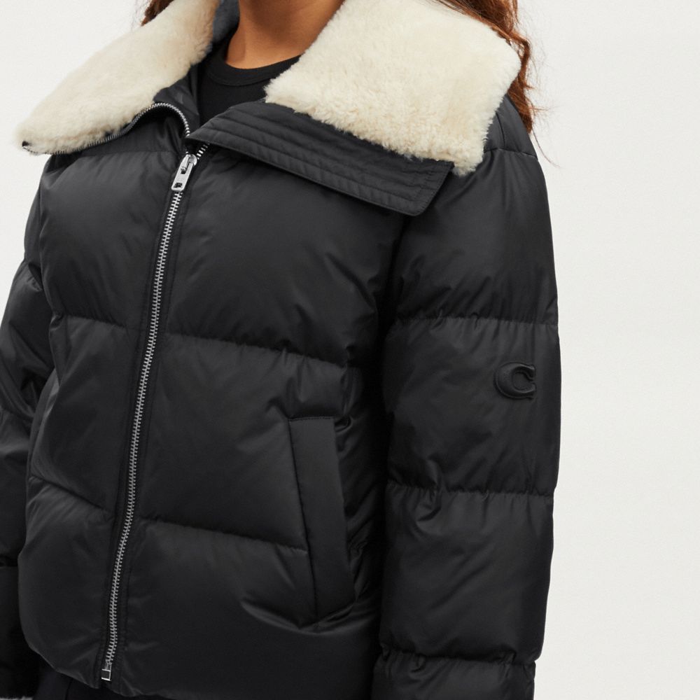 Coach down jacket on sale with shearling collar
