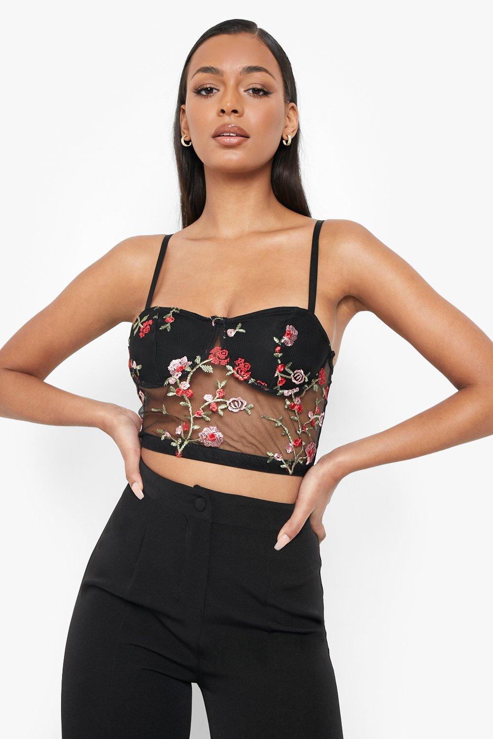 Embroidered on sale mesh top