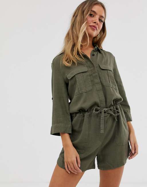 Khaki on sale linen playsuit