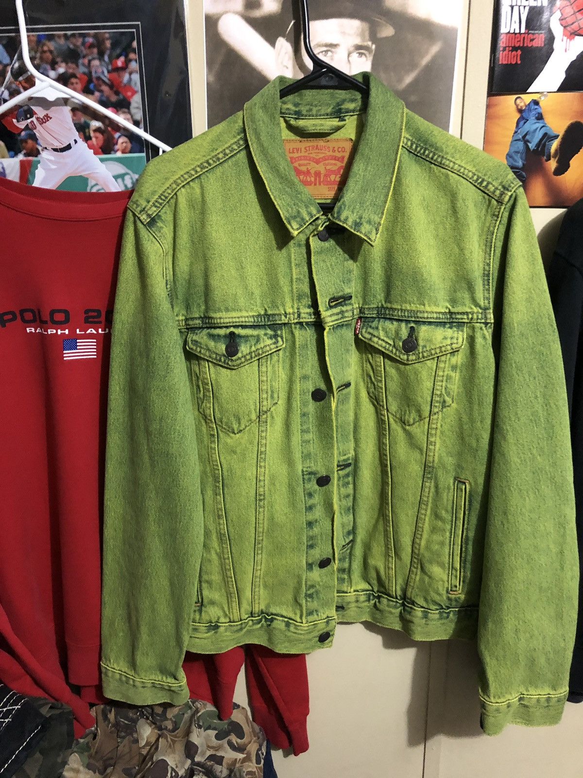 Product Item: Levi's the trucker on sale neon green denim jacket