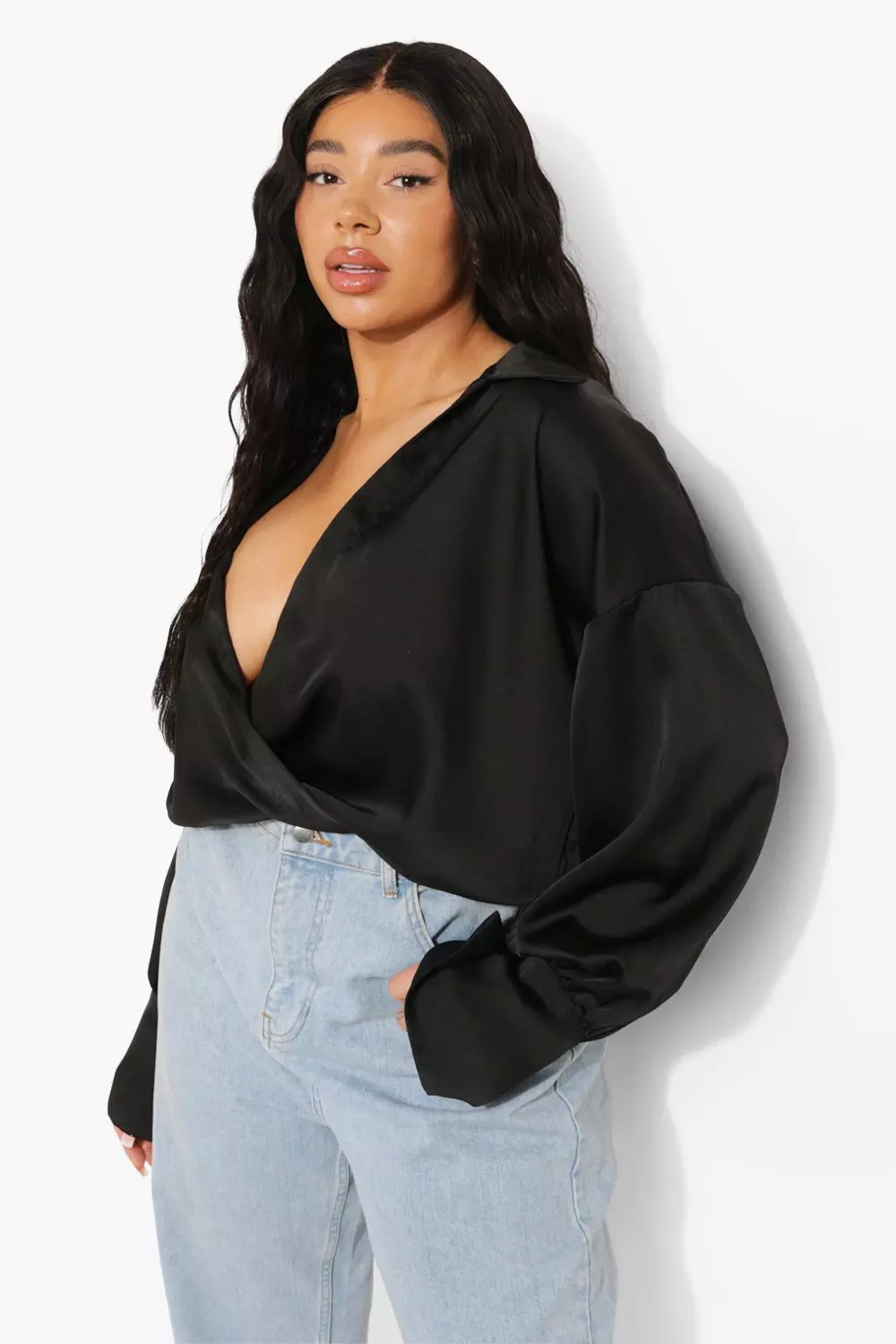 Plunge on sale satin blouse