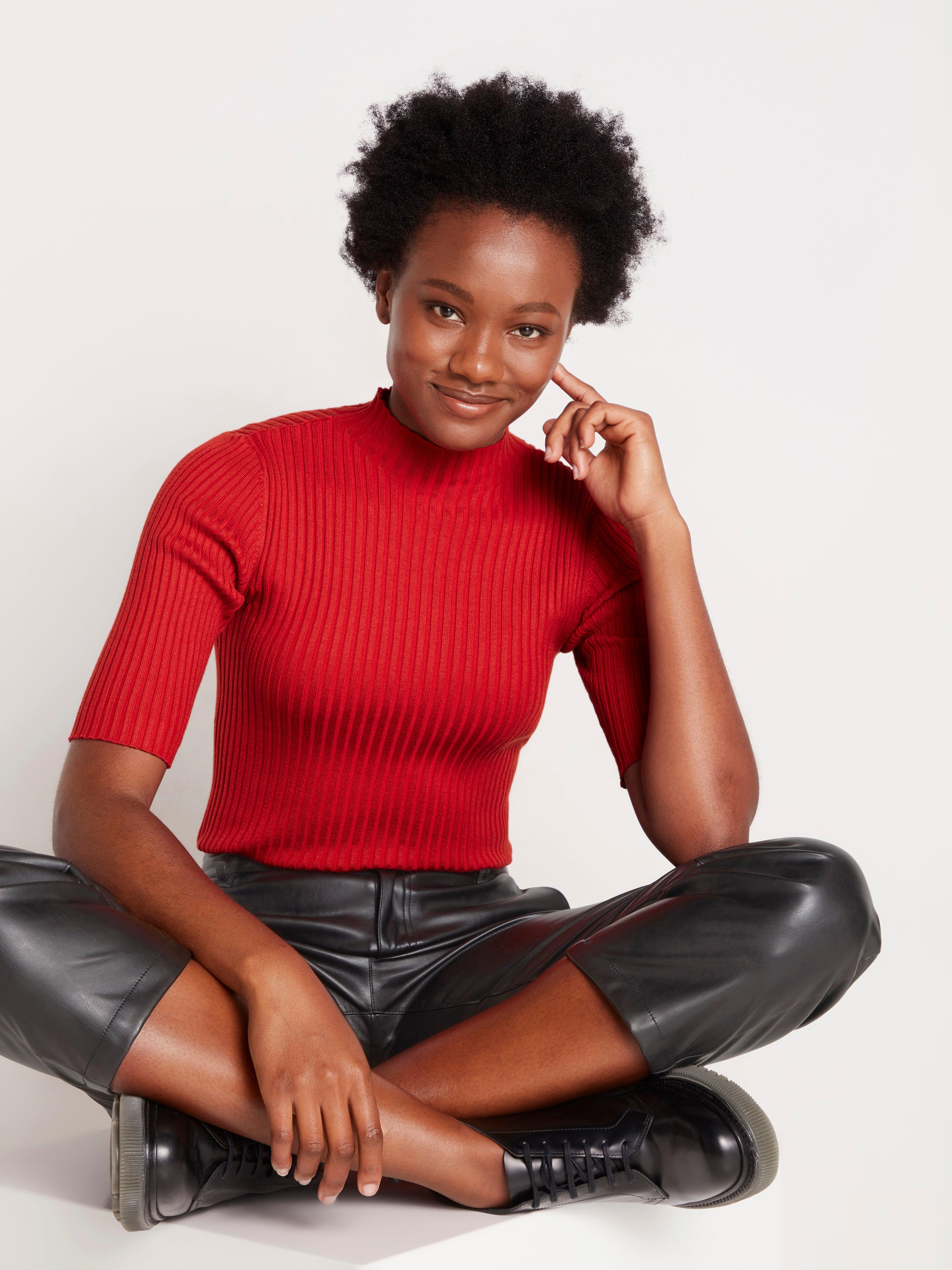 Ribbed knit mock on sale neck top