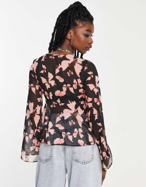 Sheer on sale sleeve blouse