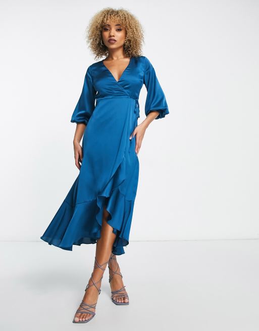 Teal satin on sale wrap dress