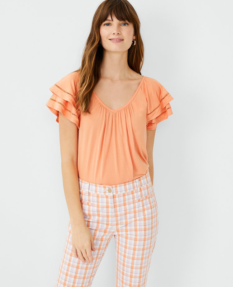 V neck ruffle on sale sleeve top