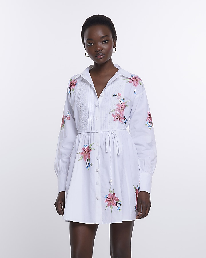 White mini on sale shirt dress
