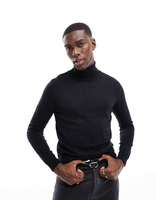 Black knitted roll on sale neck jumper