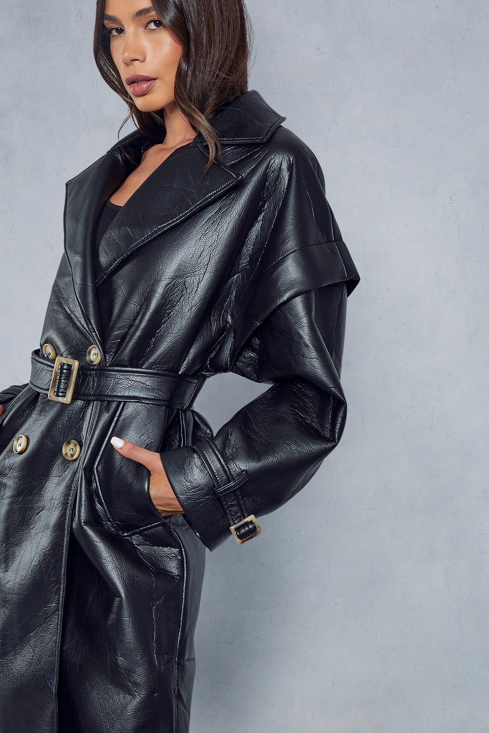 Black leather on sale look coat