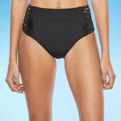 Black strappy high on sale waisted bikini bottoms